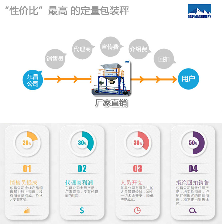 現在市場是普遍的定量包裝秤使用人數是兩人操作的,一人套袋一人送袋縫包后剪線,***后才可以上輸送帶。而東昌定量包裝秤完全省去了兩個人操作,東昌定量包裝秤一個人就可以操作,套袋后,機器內的物料根據定量系統輸送到帶內,夾袋系統松袋時,這是第二個袋就可以套住了,不耽誤時間。
